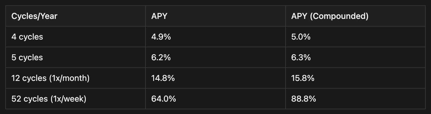 Over the past 45 days, LPs collectively earning ~$48K in yield on $3.91M. That's an average spread of 1.23%. You can outperform lending platforms by doing 5 cycles per year, or once every 2.5 months. A lot of LPs are doing that in a week.